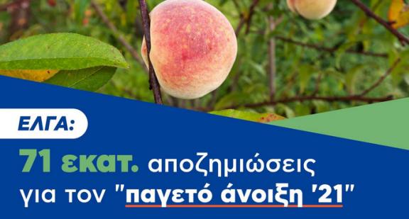 ⦁ Από τον ΕΛΓΑ: 71 εκατ. ευρώ για αποζημιώσεις για τον «Παγετό Άνοιξη ‘21»
