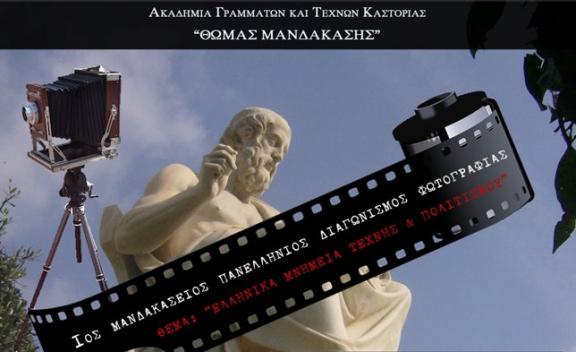 Η Ακαδημία Γραμμάτων & Τεχνών Καστοριάς «Θωμάς Μανδακάσης», θέλοντας να αναδείξει το αναξιοποίητο μνημειακό πολιτιστικό απόθεμα της Ελλάδας καλλιεργώντας συγχρόνως την τέχνη της φωτογραφίας με δημιουργικό και ωφέλιμο τρόπο, διοργανώνει τον 1ο Πανελλήνιο Μανδακάσειο Διαγωνισμό Φωτογραφίας 2016 με θεματικό αντικείμενο τα Ελληνικά Μνημεία Τέχνης και Πολιτισμού.