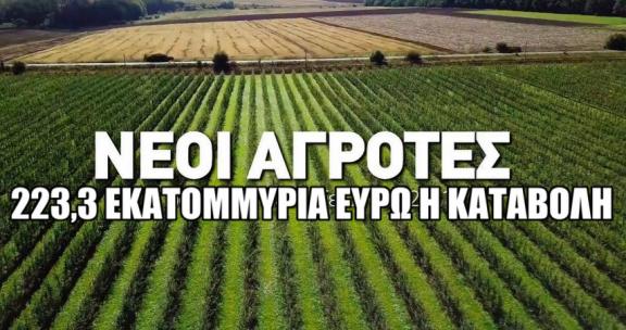 223,3 ΕΚΑΤΟΜΜΥΡΙΑ ΕΥΡΩ Η ΚΑΤΑΒΟΛΗ ΣΤΟΥΣ ΝΕΟΥΣ ΑΓΡΟΤΕΣ