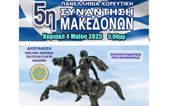 5η ΠΑΝΕΛΛΗΝΙΑ ΧΟΡΕΥΤΙΚΗ ΣΥΝΑΝΤΗΣΗ ΤΩΝ ΜΑΚΕΔΟΝΩΝ,στον χώρο δίπλα στο Άγαλμα του Μεγάλου Αλεξάνδρου, στην παραλία της Θεσσαλονίκης,την Κυριακή 4 Μαΐου 2025 στις 5:00μμ.