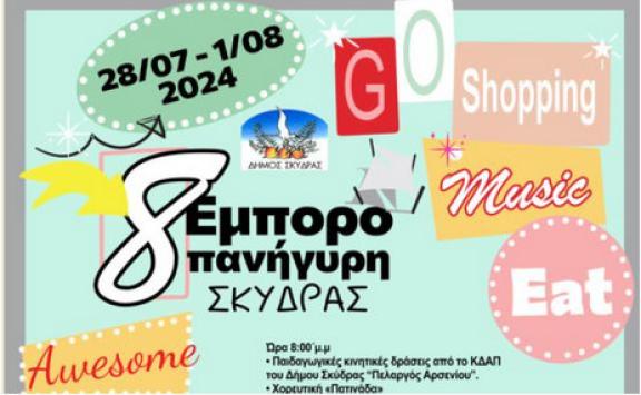 8η ΕΜΠΟΡΟΠΑΝΗΓΥΡΗ ΣΚΥΔΡΑΣ - ΣΗΜΕΡΑ ΤΑ ΕΓΚΑΙΝΙΑ -ΔΙΑΡΚΕΙΑ ΑΠΟ 28/7 ΕΩΣ 1/8/2024 - ΠΡΟΓΡΑΜΜΑ