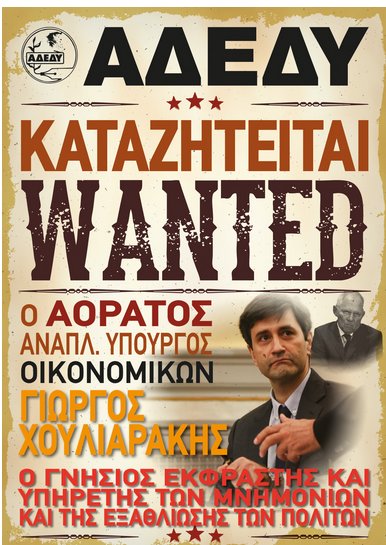 ΑΦΙΣΑ ΤΗΣ Α.Δ.Ε.Δ.Υ. ΓΙΑ ΤΟΝ ΑΟΡΑΤΟ ΑΝΑΠΛΗΡΩΤΗ ΥΠΟΥΡΓΟ ΟΙΚΟΝΟΜΙΚΩΝ κ. ΓΙΩΡΓΟ ΧΟΥΛΙΑΡΑΚΗ Πέμπτη, 3 Νοέμβρη, 2016 - 17:29 . . Κατηγορία: Επικαιρότητα