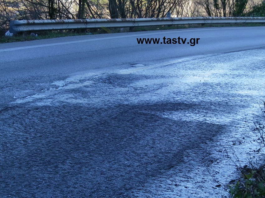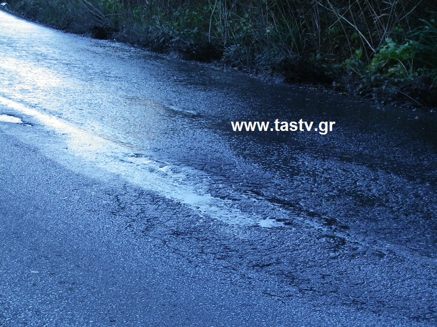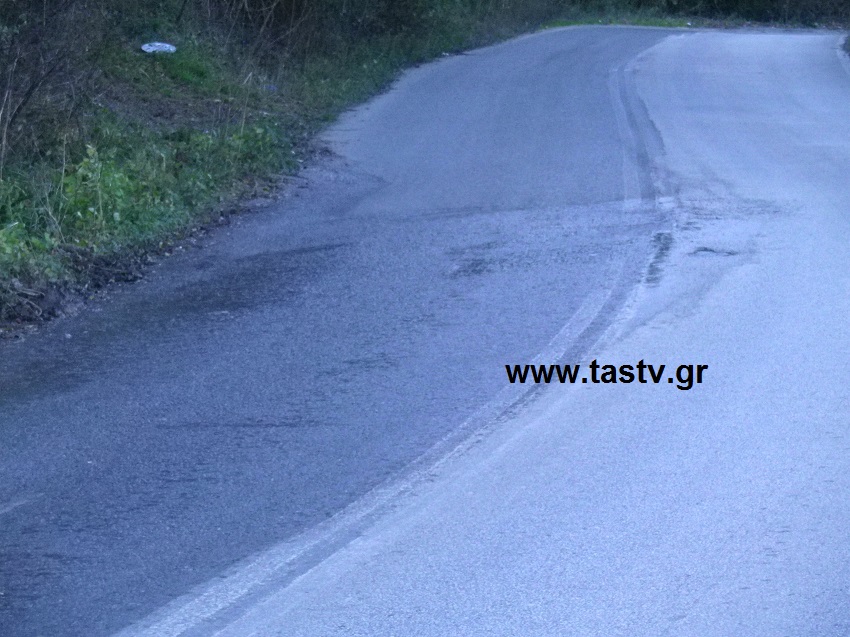 Στο σημείο του δρόμου αυτού υπάρχει επάνω στη διαχωριστική γραμμή νερό το οποίο αναβλύζει με αποτέλεσμα τις προηγούμενες μέρες με τις χαμηλές θερμοκρασίες να παγώσει το νερό και να έχουμε 5 αυτοκίνητα από το χωριό του Άγρα και άλλα 5 από άλλες περιοχές να έχουν φύγει από το δρόμο και να έχουν τουμπάρει όπως η φωτογραφία που βλέπετε.