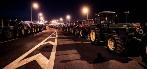 Τα τρακτέρ παρατεταγμένα και το βράδυ στη Νίκαια της Λάρισας (φωτογραφία αρχείου)