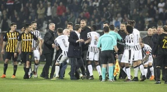 Ο Γιώργος Κομίνης διέκοψε οριστικά το παιχνίδι, τονίζοντας ότι ο ΠΑΟΚ προηγείτο κατά τη διακοπή με 1-0!