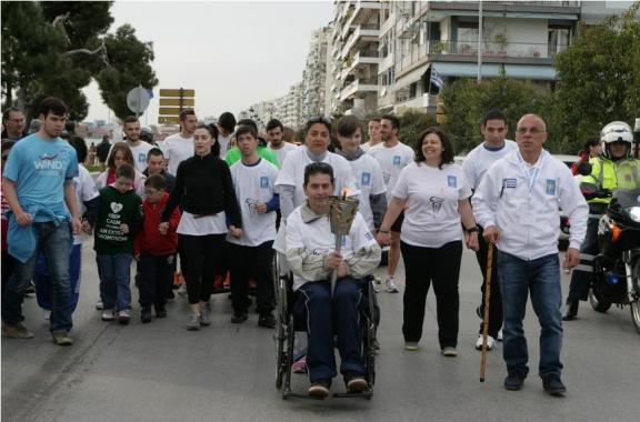 Η πιο συγκινητική στιγμή ήρθε μπροστά από το άγαλμα του Ναυάρχου Βότση, όπου τη Φλόγα μετέφεραν άτομα με αναπηρίες, εκπροσωπώντας τους 45 φορείς κοινωνικής προσφοράς που υποστηρίζουν και υποστηρίζονται από τη διοργάνωση. Ο πρόεδρος του παραρτήματος Μακεδονίας - Θράκης του Πανελληνίου Συλλόγου Παραπληγικών (ΠΑΣΠΑ), Γιώργος Αυγουστίδης, ήταν ο τελευταίος λαμπαδηδρόμος στην πορεία προς το Λευκό Πύργο, όπου την Αλεξάνδρειο Φλόγα υποδέχθηκε η αντιδήμαρχος Πολιτισμού, Παιδείας και Αθλητισμού Έλλη Χρυσίδου και άναψε το βωμό.