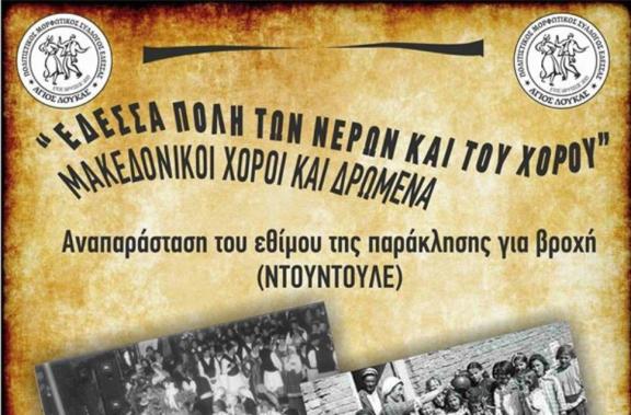 Ο πολιτιστικός σύλλογος Άγιος Λουκάς Έδεσσας με τη συνεργασία και συμμετοχή των πολιτιστικών συλλόγων των τοπικών διαμερισμάτων: Άγρα, Βρυττά, Νησί, Καρυδιά, Πλατάνη, Μεσημέρι, Αγία Φωτεινή, Φλαμουριά διοργανώνει την αναβίωση του εθίμου αυτού στην προσπάθειά του να αναστήσει παλιά έθιμα της παράδοσής μας, να ξυπνήσει μνήμες των μεγαλυτέρων και να τις μεταλαμπαδεύσει στους νεότερους.