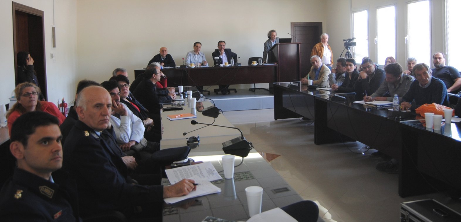 Ο Προϊστάμενος Πολιτικής Προστασίας κ. Χρήστος Μπιμπίτσος έθεσε το πλαίσιο της διαβούλευσης (ανάλυση της κατάστασης με περιβαλλοντικά, κοινωνικά και οικονομικά κριτήρια) ενώ ο Γεωλόγος Μηχανικός κ. Σίφης Παπαδόπουλος παρουσίασε την υφιστάμενη κατάσταση και εναλλακτικά μοντέλα εκτίμησης επιπτώσεων στις χρήσεις γης από την άνοδο της στάθμης της λίμνης με τη τεχνολογία των Γεωγραφικών Συστημάτων Πληροφοριών.