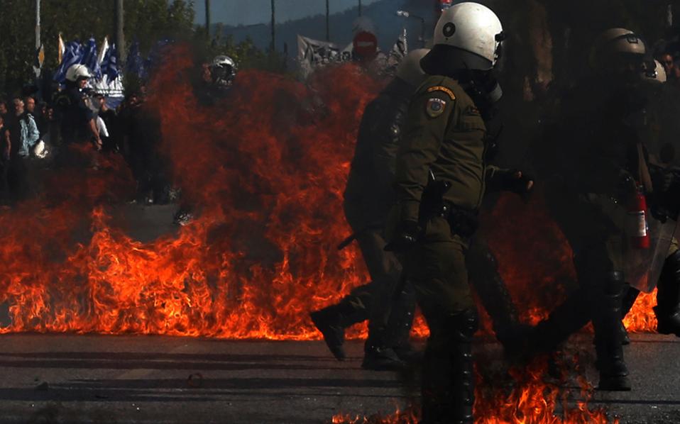 Επεισόδια ξέσπασαν στο κέντρο της Αθήνας ανάμεσα σε άνδρες των ΜΑΤ και αγνώστους στη διάρκεια της πρώτης γενικής απεργίας των ΓΣΕΕ και ΑΔΕΔΥ από τον περασμένο Ιανουάριο που ανέλαβε την εξουσία ο ΣΥΡΙΖΑ. Ομάδα περίπου 150 ατόμων ξέφυγε από την πορεία τη στιγμή που περνούσε έξω από τη Βουλή και πέταξε βόμβες μολότοφ στους αστυνομικούς οι οποίοι απάντησαν κάνοντας χρήση χημικών. Επίσης, αντιεξουσιαστές προκάλεσαν καταστροφές σε καταστήματα, στάσεις λεωφορείων και φωτεινούς σηματοδότες, ενώ σύμφωνα με πληροφορίες έκαψαν και ένα αυτοκίνητο. Μολότοφ έπεσαν και στην Τράπεζα της Ελλάδος στην οδό Πανεπιστημίου.