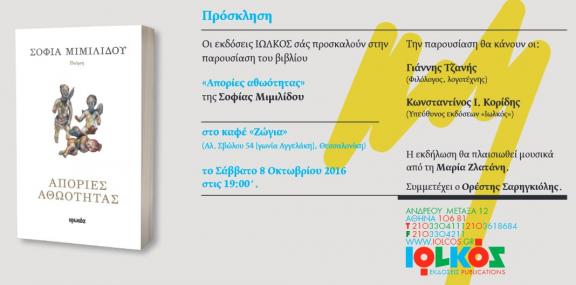 "ΑΠΟΡΙΕΣ ΑΘΩΟΤΗΤΑΣ" ΜΙΜΙΛΙΔΟΥ ΣΟΦΙΑ - ΠΑΡΟΥΣΙΑΣΗ ΠΟΙΗΤΙΚΗΣ ΣΥΛΛΟΓΗΣ