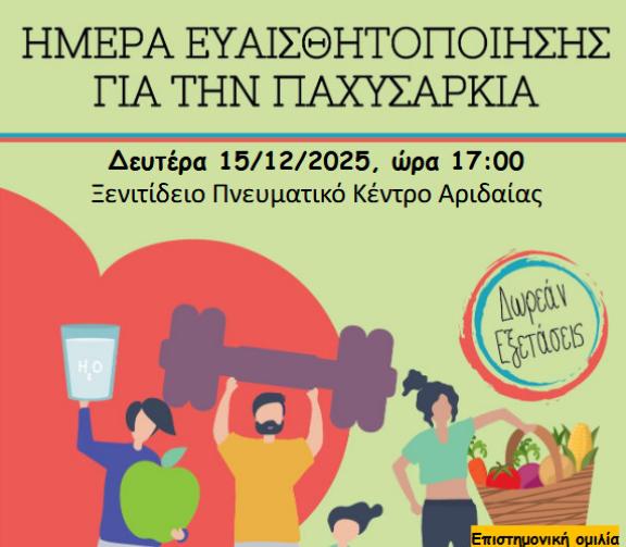 ΑΡΙΔΑΙΑ ; ΕΚΔΗΛΩΣΗ ΟΜΙΛΙΑ ΔΡΑΣΗ ΜΕ ΔΩΡΕΑΝ ΕΞΕΤΑΣΕΙΣ ΓΙΑ ΤΗΝ ΠΑΧΥΣΑΡΚΙΑ