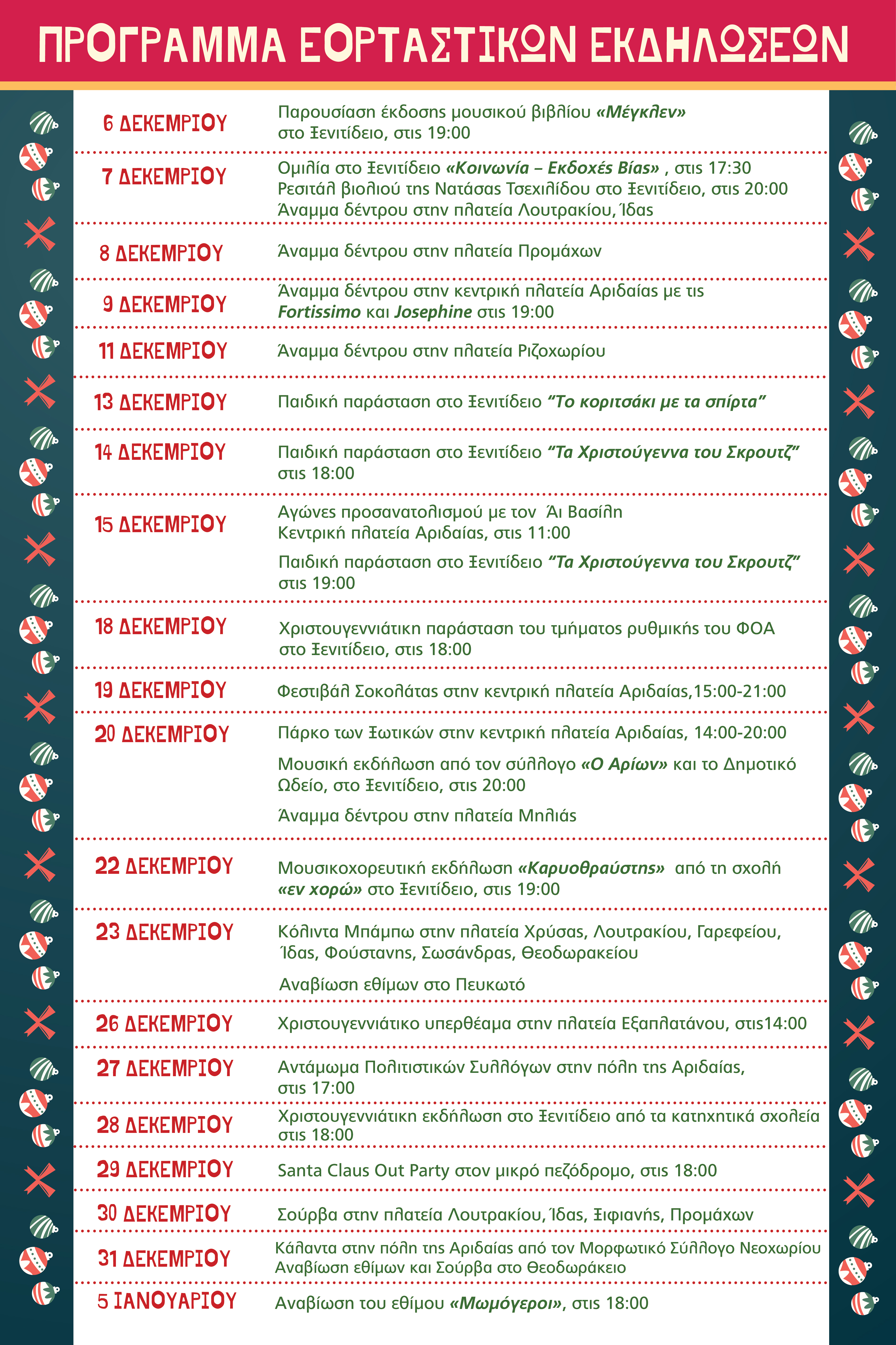 ΑΡΙΔΑΙΑ : ΠΡΟΓΡΑΜΜΑ ΕΟΡΤΑΣΤΙΚΩΝ ΕΚΔΗΛΩΣΕΩΝ