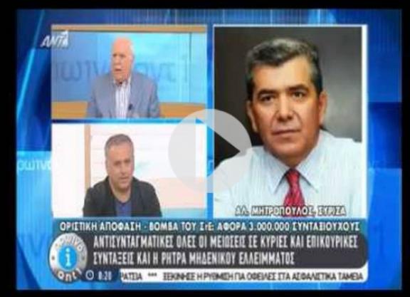 Η απόφαση αφορά περίπου 3 εκατομμύρια συνταξιούχους και το δημοσιονομικό κόστος ανέρχεται σε περισσότερα από 2 δισ. ευρώ, όπως είπε ο κ. Μητρόπουλος.