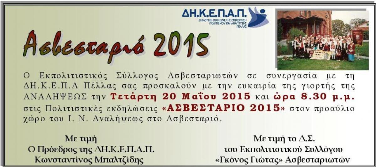 ΔΗΚΕΠΑ ΔΗΜΟΥ ΠΕΛΛΑΣ: ΠΟΛΙΤΙΣΤΙΚΕΣ ΕΚΔΗΛΩΣΕΙΣ 20ης & 21ης ΜΑΙΟΥ 2015
