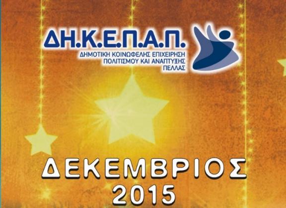 ΔΗΚΕΠΑ ΠΕΛΛΑΣ : ΠΡΟΓΡΑΜΜΑ ΕΚΔΗΛΩΣΕΩΝ ΔΕΚΕΜΒΡΙΟΥ 2015 Δευτέρα, 30 Νοέμβρη, 2015 - 18:06 Πρόγραμμα εκδηλώσεων ΔΗΛΕΠΑ ΠΕΛΛΑΣ μηνός Δεκεμβρίου 2015 ... Κατηγορία: Εκδηλώσεις