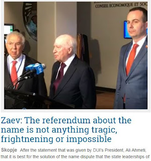 Μετά από τη δήλωση που δόθηκε από πρόεδρο του αλβανικού κόμματος DUI, Αλί Αχμέτι ότι: είναι καλύτερο για την επίλυση της διαφωνίας του ονόματος , όταν οι δύο ηγεσίες των κρατών της Ελλάδας και των Σκοπίων φθάσουν στην επίλυση, όπως έγινε η Συμφωνία με τη Βουλγαρία κλπ., να ψηφισθεί στο Κοινοβούλιο και να μην ζητηθεί δημοψήφισμα, ο πρωθυπουργός Ζόραν Ζάεφ μετά τη σημερινή ακρόαση για την υπόθεση ‘Ransom’ δήλωσε ότι η στάση της Σοσιαλδημοκρατικής Ένωσης- SDSM, είναι ότι πρέπει να γίνει δημοψήφισμα.