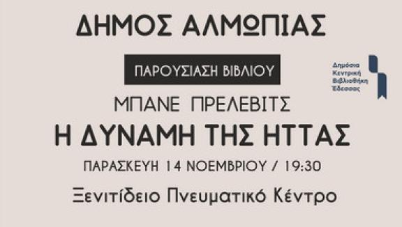 ΔΗΜΟΣ ΑΛΜΩΠΙΑΣ : ΠΑΡΟΥΣΙΑΣΗ ΒΙΒΛΙΟΥ "Η ΔΥΝΑΜΗ ΤΗΣ ΗΤΤΑΣ"