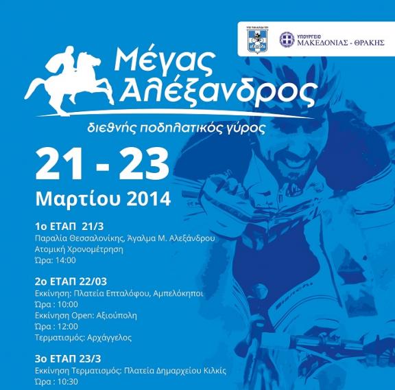 Ο Δήμος Αλμωπίας σας ενημερώνει ότι από 21 έως 23 Μαρτίου θα διεξαχθεί ο Διεθνής Ποδηλατικός Γύρος "Μέγας Αλέξανδρος".