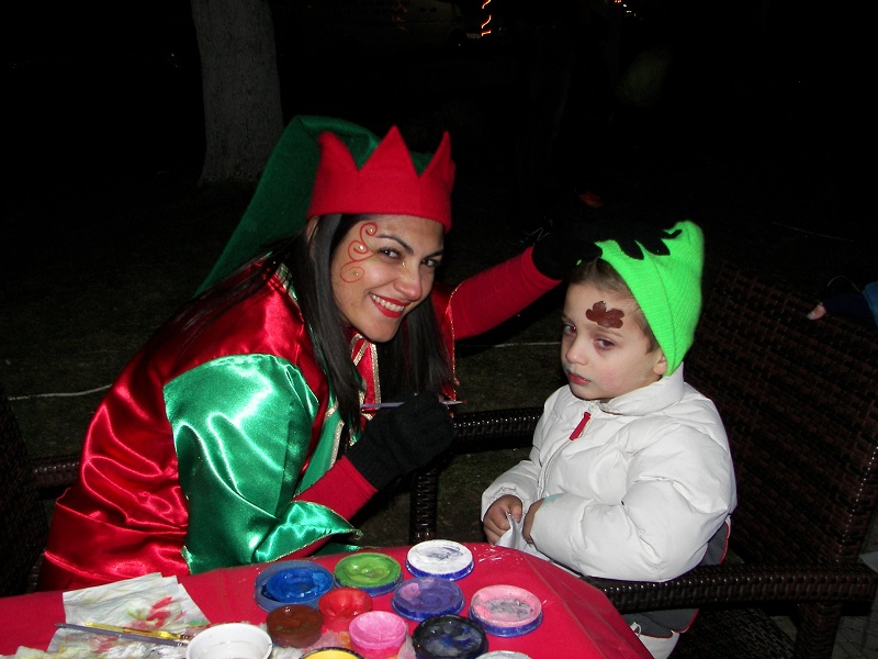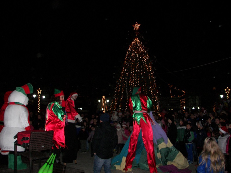 Στη συνέχεια, η ίδια και οι συγκεντρωμένοι, αφού μέτρησαν αντίστροφα από το δέκα μέχρι το μηδέν, έδωσαν το σύνθημα για το άναμμα του Χριστουγεννιάτικου Δέντρου, που στημένο στο κέντρο, φώτισε με τα λαμπιόνια του όλη την πλατεία.