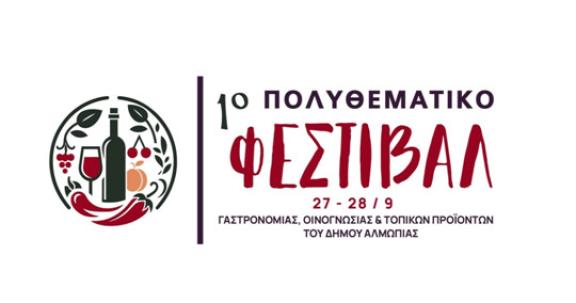 Ο Δήμος Αλμωπίας διοργανώνει το 1ο Πολυθεματικό Φεστιβάλ Γαστρονομίας, Οινογνωσίας και Τοπικών Προϊόντων που θα πραγματοποιηθεί την Παρασκευή 27 και το Σάββατο 28 Σεπτεμβρίου 2024.