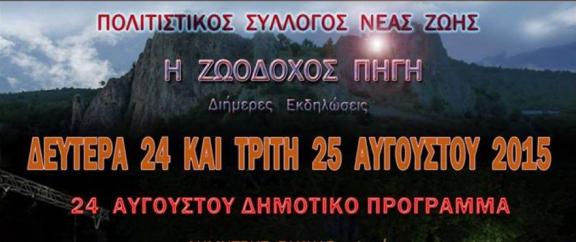 Διήμερo πολιτιστικών καλοκαιρινών εκδηλώσεων διοργανώνει και προσκαλεί όλο τον κόσμο ο ΠΟΛΙΤΙΣΤΙΚΟΣ ΣΥΛΛΟΓΟΣ ΝΕΑΣ ΖΩΗΣ την Δευτέρα 24 και την Τρίτη 25 Αυγούστου 2015 στην Νέα Ζωή – Πέλλας Ο Σύλλογος σας υπόσχεται δύο αξέχαστες βραδυές παρέα με την Έφη Θώδη και με δημοτικά, βλάχικα και ποντιακά χορευτικά συγκροτήματα. σύμφωνα με το παρακάτω πρόγραμμα – αφίσα με την υπενθύμιση να μην ξεχάσετε τις ζακέτες σας!