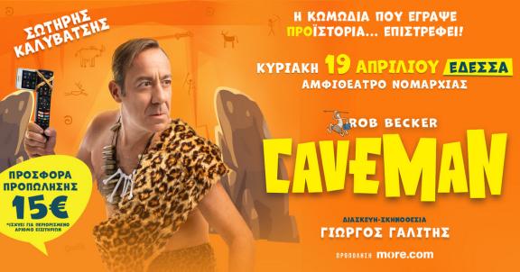 Το παγκόσμιο φαινόμενο CAVEMAN- η πιο επιτυχημένη κωμωδία για της σχέσεις των δύο φύλων- είναι εδώ, με πολύ γέλιο, αυτοσαρκασμό,συγκίνηση, χορό, τραγούδι, μπαλέτα, λιοντάρια, κροκοδείλους, ένα μοναδικό υπερθέαμα με χιλιάδες κομπάρσους και προϊστορικές αλήθειες που σπάνε κόκαλα (μαμούθ)!