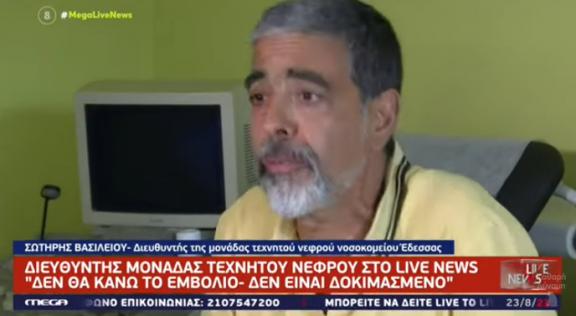 ΕΔΕΣΣΑ: ΔΝΤΗΣ ΜΟΝΑΔΑΣ ΝΕΦΡΟΥ "ΤΑ ΕΜΒΟΛΙΑ ΔΕΝ ΕΙΝΑΙ ΔΟΚΙΜΑΣΜΕΝΑ" [ΒΙΝΤΕΟ]