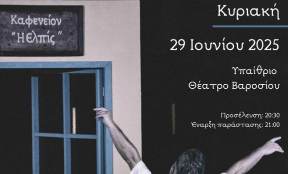 To Εαρινό Φεστιβάλ Μουσικής & Τεχνών 2025 ολοκληρώνετε με μία πρωτότυπη και επίκαιρη μουσικοθεατρική παράσταση με τίτλο ''Καφενείον Η Ελπίς'', μία λαϊκή κωμωδία με ζωντανή μουσική στο Υπαίθριο θέατρο Βαροσίου την Κυριακή 29 Ιουνίου ώρα 21:00. Είσοδος Ελεύθερη