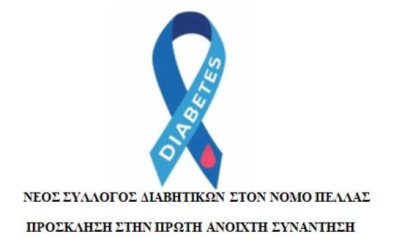 ΕΔΕΣΣΑ : ΝΕΟΣ ΣΥΛΛΟΓΟΣ ΔΙΑΒΗΤΙΚΩΝ ΣΤΟΝ ΝΟΜΟ ΠΕΛΛΑΣ – ΠΡΟΣΚΛΗΣΗ ΣΕ ΑΝΟΙΧΤΗ ΣΥΝΑΝΤΗΣΗ