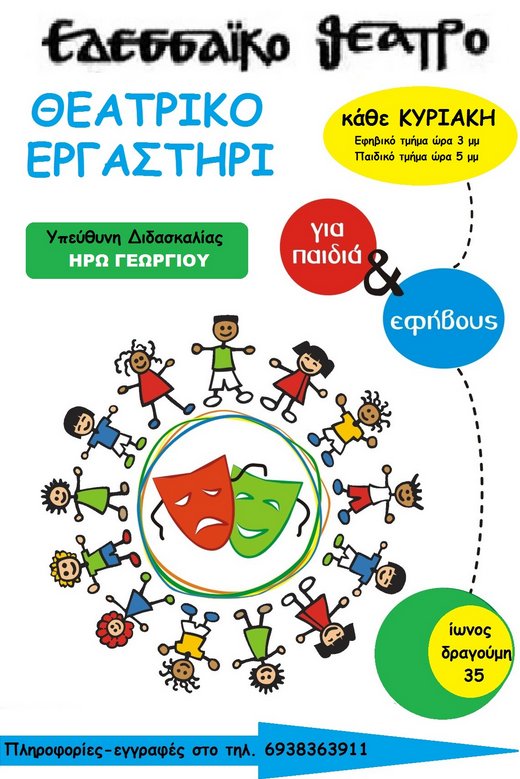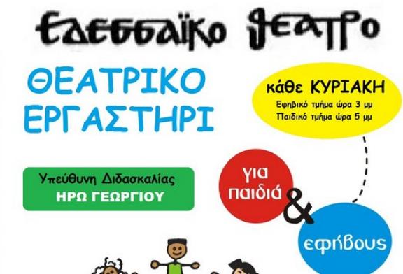 Το Εδεσσαϊκό Θέατρο στα πλαίσια της αποστολής του για συμβολή στην θεατρική ανάπτυξη, στην δημιουργία θεατρικής υποδομής στην πόλη μας, αλλά και την αίσθηση ευθύνης απέναντι στα παιδιά και τους νέους, συνεχίζει τη λειτουργία του Θεατρικού Εργαστηρίου και κατά τη νέα θεατρική περίοδο.
