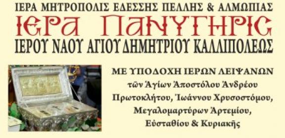 ΕΚΔΗΛΩΣΕΙΣ ΙΕΡΟΥ ΝΑΟΥ ΑΓΙΟΥ ΔΗΜΗΤΡΙΟΥ ΚΑΛΛΙΠΟΛΗΣ