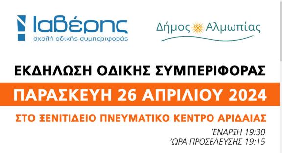 ΕΚΔΗΛΩΣΗ ΟΔΙΚΗΣ ΣΥΜΠΕΡΙΦΟΡΑΣ ΣΤΟ ΔΗΜΟ ΑΛΜΩΠΙΑΣ ΜΕ ΤΟΝ ΙΑΒΕΡΗ