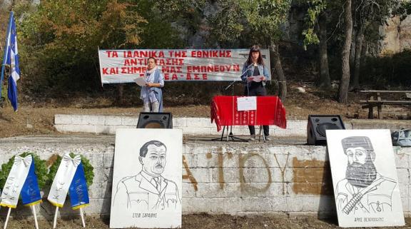 «Τιμούμε σήμερα στα Στενά του Μουχαρέμ -Χάνι όλους τους μαχητές & μαχήτριες , που στη δύσκολη ώρα της φασιστικής επιβουλής επέλεξαν τον τίμιο δρόμο του αγώνα , αψηφώντας τις απέραντες δυσκολίες και τις στερήσεις, ακόμη και τον ίδιο το θάνατο. Αυτούς, που ανταποκρί-θηκαν στο σάλπισμα οργάνωσης της αντίστασης του Λαού μας από το ΕΑΜ & συσπειρώθηκαν στον θρυλικό ΕΛΑΣ και ήταν η συντριπτική πλειοψηφία του ελληνικού λαού.