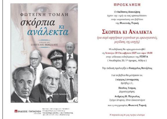ΕΚΔΟΣΕΙΣ ΠΑΠΑΖΗΣΗ - ΠΑΡΟΥΣΙΑΣΗ ΒΙΒΛΙΟΥ "ΣΚΟΡΠΙΑ ΚΑΙ ΑΝΑΛΕΚΤΑ"