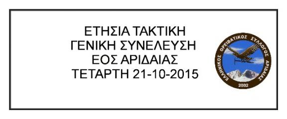του Συλλόγου την Τετάρτη 21 Οκτωβρίου 2015 και ώρα 20:00.