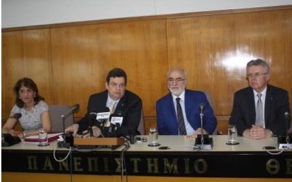 Ο Παντελής Νίγδελης, που διακρίνεται στο μέσον της φωτογραφίας, αναφέρει τους στόχους του προγράμματος της επώνυμης έδρας ποντιακών σπουδών