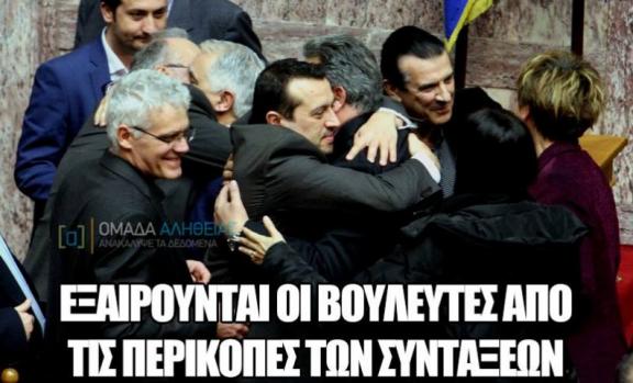 ΕΞΑΙΡΟΥΝΤΑΙ ΟΙ ΒΟΥΛΕΥΤΕΣ ΑΠΟ ΤΙΣ ΠΕΡΙΚΟΠΕΣ ΤΩΝ ΣΥΝΤΑΞΕΩΝ ΜΕ ΝΟΜΟΣΧΕΔΙΟ