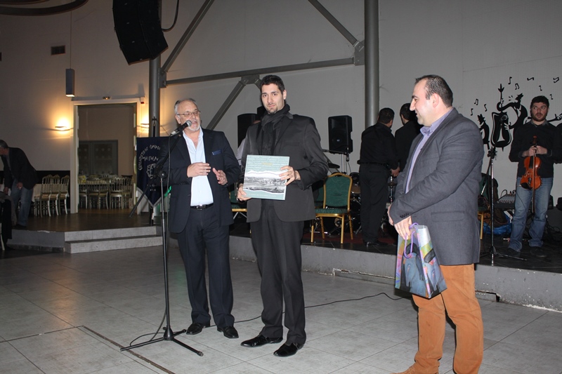 Ο Πρόεδρος του Ομίλου τίμησε το Διευθυντή της Σ.Ο.Ν.Ε. κ. Βαγγέλη Αραμπατζή προσφέροντάς του συμβολικά ένα Ιστορικό Φωτογραφικό Λεύκωμα των Γιαννιτσών, ενώ σε κατ ιδίαν συζήτηση διευθέτησαν επικείμενη συναυλία στα Γιαννιτσά.