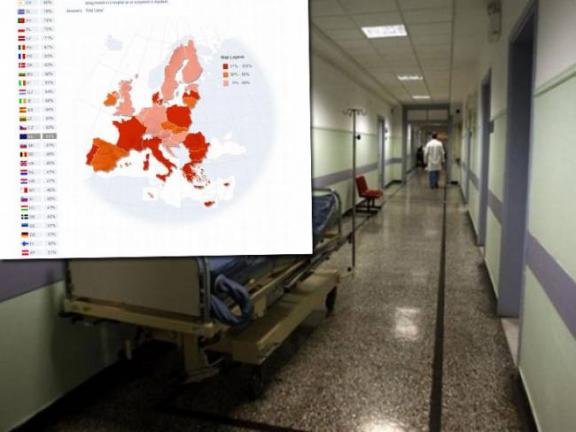 Σοβαρή ανησυχία καταγράφουν οι Έλληνες πολίτες σε ερώτηση που αφορά στην διάρκεια νοσηλείας τους στο ΕΣΥ, με το 78% να εκδηλώνει φόβο και προβληματισμό. Η Ελλάδα εδώ κατέχει την δεύτερη θέση, μετά την Κύπρο που εμφανίζεται να έχει την χειρότερη θέση με 82% και με την Αυστρία να έρχεται πρώτη με ποσοστό 21%.