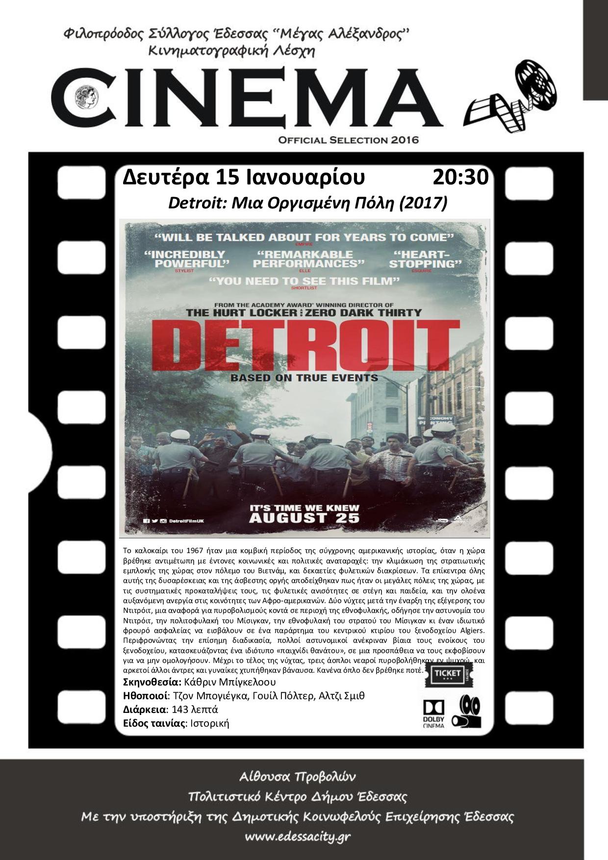 Φ.Σ. ΈΔΕΣΣΑΣ « ΜΕΓΑΣ ΑΛΕΞΑΝΔΡΟΣ» ΚΙΝΗΜΑΤΟΓΡΑΦΙΚΗ ΛΕΣΧΗ "Detroit: Μια Οργισμένη Πόλη (2017)"