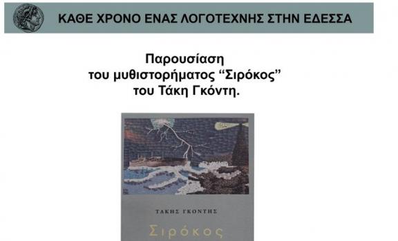 ΑΘΕ ΧΡΟΝΟ ΕΝΑΣ ΛΟΓΟΤΕΧΝΗΣ ΣΤΗΝ ΕΔΕΣΣΑ ΠΑΡΟΥΣΙΑΣΗ του μυθιστορήματος «Σιρόκος» του Τάκη Γκόντη