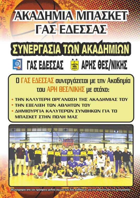 ΓΑΣ ΕΔΕΣΣΑΣ : ΣΥΝΕΡΓΑΣΙΑ ΑΚΑΔΗΜΙΑΣ ΜΠΑΣΚΕΤ ΜΕ ΤΟΝ ΆΡΗ ΘΕΣΣΑΛΟΝΙΚΗΣ.