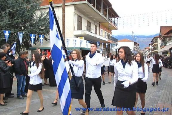 Στη συνέχεια έγινε η μαθητική παρέλαση του Νηπιαγωγείου του Δημοτικού Σχολείου, του Γυμνασίου και του Λυκείου Άρνισσας όπου όλα τα αγόρια και τα κορίτσια παρέλασαν περήφανα και καταχειροκροτήθηκαν με καμάρι από τους γονείς και τον κόσμο, παρά το λίγο κρύο που είχε.