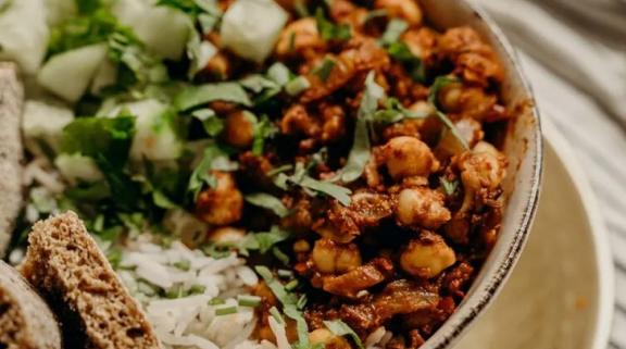 Για τους ανθρώπους που έχουν κόψει ή περιορίσει την κατανάλωση κρέατος, ένα πιάτο ρεβύθια με ρύζι μπορεί να προσφέρει σημαντική ποσότητα πρωτεϊνών στη διατροφή, καθώς μόλις ένα φλιτζάνι ρεβύθια διαθέτει σχεδόν το 1/3 των ημερήσιων αναγκών ενός ενηλίκου σε πρωτεΐνες.