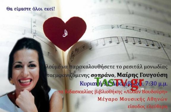 Η Εδεσσαία Μαίρη Γουγούση τον Δεκέμβριο στις 11 του μηνός ως πρωτοεμφανιζόμενη θα παρουσιάσει ρεσιτάλ μονωδίας