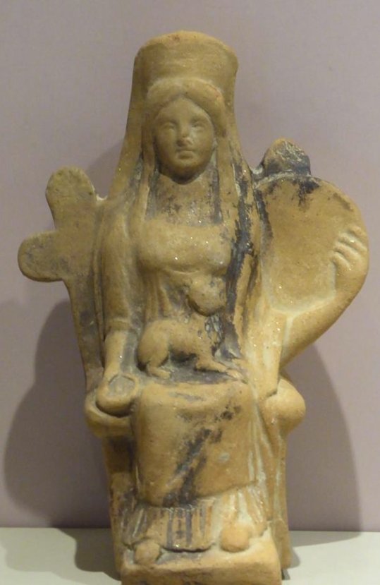Και πίσω στις μικρασιατικές ρίζες: η φρυγική Κυβέλη, ένα ανάγλυφο σε βράχο από αυτά που σκαλισμένα στις πλαγιές των βουνών αγνάντευαν την κοιλάδα, εξασφαλίζοντας την ευλογία της παρουσίας της... Η νεοχεττιτική Kubaba από το Kargemis, ένθρονη με τον καθρέφτη και την κάψα της παπαρούνας στα χέρια -γοητευτική φαρμακεύτρια... και από τα βάθη του χρόνου η Νεολιθική Μεγάλη Μητέρα από το Τσατάλ Χουγιούκ... Τα αιλουροειδή που την πλαισιώνουν και το περιβάλλον στο οποίο βρέθηκε κάνουν αυτό το μικροσκοπικό πήλινο αγαλματάκι την παλιότερη βέβαιη απεικόνιση θεότητας που γνωρίζουμε...