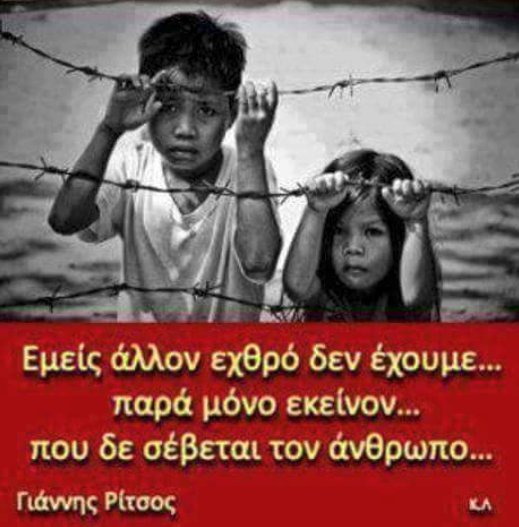 Οι προσφυγικές ροές αφορούν όλο τον κόσμο και σε κάθε περίπτωση δεν ευθύνεται η χώρα μας γι αυτές. Είναι γνωστός ο ένοχος και λέγεται ιμπεριαλισμός. Πάνω από τα ερείπια του πολέμου στη Συρία και αλλού, δεν είναι όλοι θλιμμένοι. Κάποιοι τρίβουν τα χέρια τους από χαρά για τις ευκαιρίες που έρχονται και τα κέρδη που τους περιμένουν …