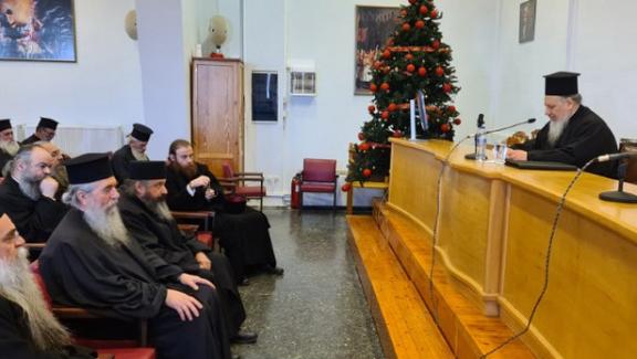 Την Τρίτη 16 Δεκεμβρίου 2025, στις 11.00 π.μ., στο Πνευματικό Κέντρο της Ι. Μητροπόλεως Εδέσσης, Πέλλης και Αλμωπίας πραγματοποιήθηκε η 5η και τελευταία Ιερατική Σύναξη του έτους με την συμμετοχή του ιερού κλήρου όλης της Μητροπόλεως. Ομιλητής ήταν ο Πανοσιολογιώτατος Αρχιμανδρίτης Παύλος Σταματάς, Ιεροκήρυκας της Ι. Μητροπόλεως Βεροίας, Ναούσης και Καμπανίας, ο οποίος ανέπτυξε το θέμα: «Η ιερωσύνη κατά τον άγιο Γρηγόριο τον Θεολόγο».