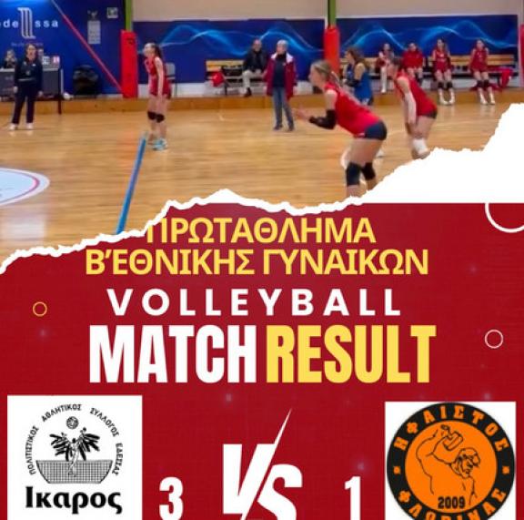 Η ομάδα βόλεϊ ΠΑΣ Ίκαρος Έδεσσας κατέκτησε μια σπουδαία νίκη στο ΔΑΚ Έδεσσας, επικρατώντας της ομάδας Α.Π.Σ. Ήφαιστος Φλώρινας με σκορ 3-1 σετ. Οι παίκτριες του Ίκαρου Έδεσσας έδειξαν από την αρχή του αγώνα την αποφασιστικότητα και το πάθος τους. Με εξαιρετικές άμυνες, εντυπωσιακές επιθέσεις και δυνατά σερβίς, κατάφεραν να κάμψουν την αντίσταση του αξιόμαχου Ηφαίστου Φλώρινας.