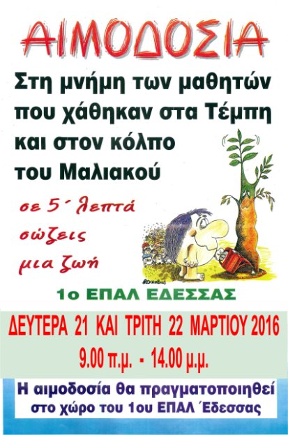 ΗΜΕΡΕΣ ΑΙΜΟΔΟΣΙΑΣ ΑΠΟ ΤΟ 1ο ΕΠΑ.Λ ΕΔΕΣΣΑΣ (ΑΦΙΣΑ)
